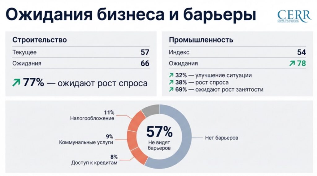 При этом оптимизм предприятий в промышленности остается устойчиво высоким. В январе ожидания выросли на 10%, достигнув 78 пунктов, что указывает на сохранение позитивного отношения касательно перспектив развития.