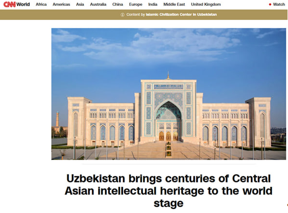 Открытие Центра исламской цивилизации в Узбекистане вызвало широкий международный интерес и стало предметом внимания ведущих мировых медиа. Публикации о Центре вышли более чем в 20 странах и на 7 языках — включая английский, арабский, испанский, китайский, хинди, турецкий и русский — с совокупным охватом аудитории свыше 1,5 миллиарда человек. Материалы подготовлены международными журналистами, аналитиками и экспертами, что отражает высокий уровень интереса к проекту со стороны глобального профессионального сообщества.