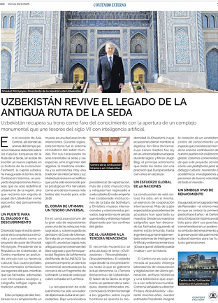 Euronews характеризует Центр как «новый хаб для наследия и исследований», объединяющий научные исследования, образование и современные выставочные практики. Испанское издание ABC отмечает, что «Узбекистан возрождает наследие великого Шёлковогопути», связывая проект с исторической ролью региона как центра цивилизационного обмена.